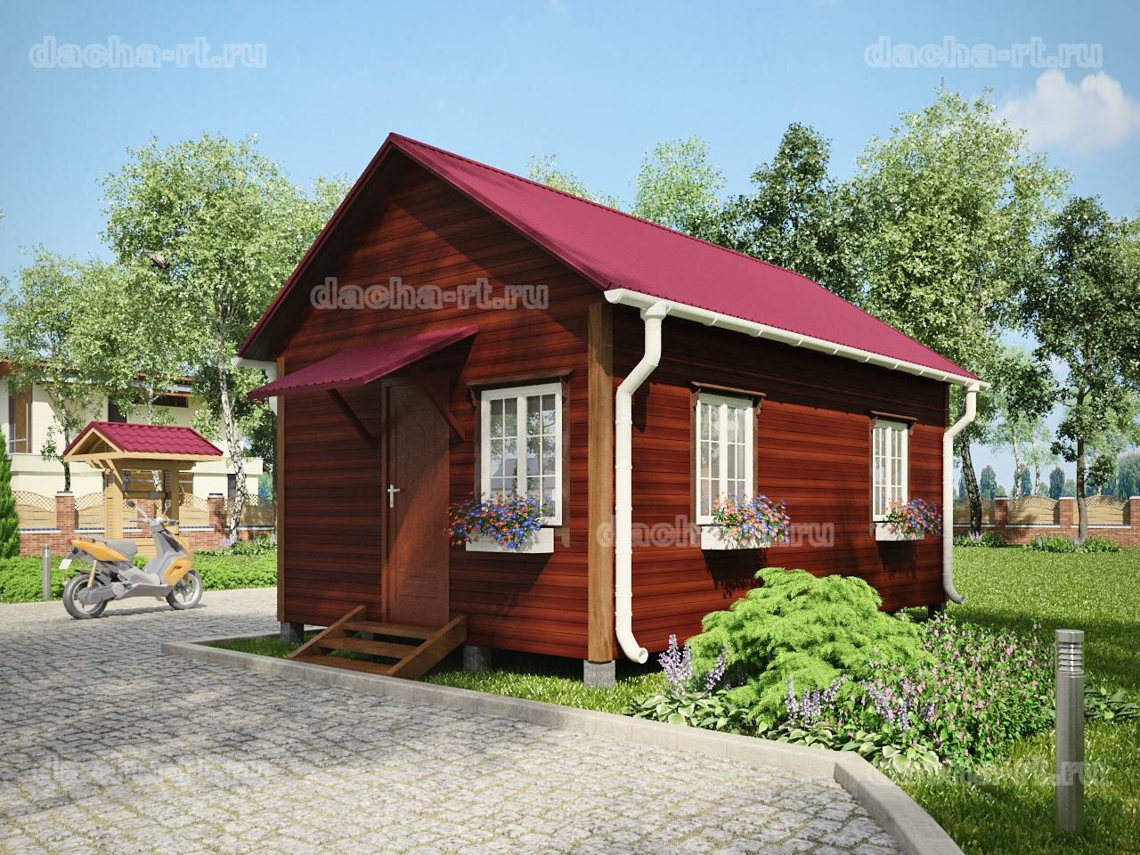 В базовую комплектацию включаются следующие опции: фундамент - опорно-блочный из бетонных блоков 200*200*400мм, наружная обшивка дома - вагонка хвойных пород; пол - шпунтованная доска 36*135мм; окна - размером 800*1000мм двухстворчатые с фурнитурой; двери - филенчатые; кровля - ондулин черепица (цвета на выбор); Проект каркасного дачного дома можно видоизменить, добавить террасу, веранду, или балкон (для вариантов домов с мансардной крышей)