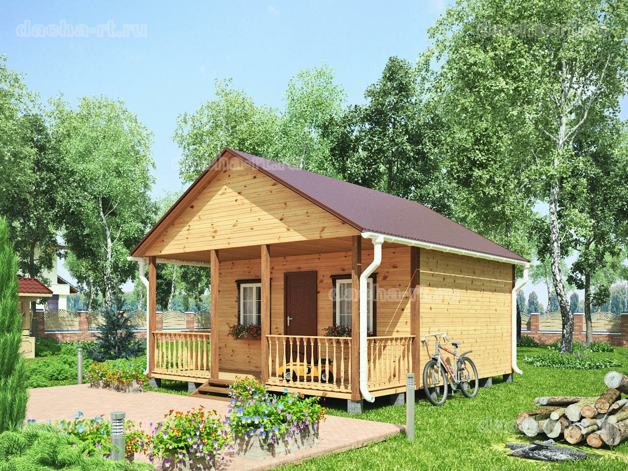 В базовую комплектацию включаются следующие опции: фундамент - опорно-блочный из бетонных блоков 200*200*400мм, наружная обшивка дома - вагонка хвойных пород; пол - шпунтованная доска 36*135мм; окна - размером 800*1000мм двухстворчатые с фурнитурой; двери - филенчатые; кровля - ондулин черепица (цвета на выбор); Проект каркасного дачного дома можно видоизменить, добавить террасу, веранду, или балкон (для вариантов домов с мансардной крышей)