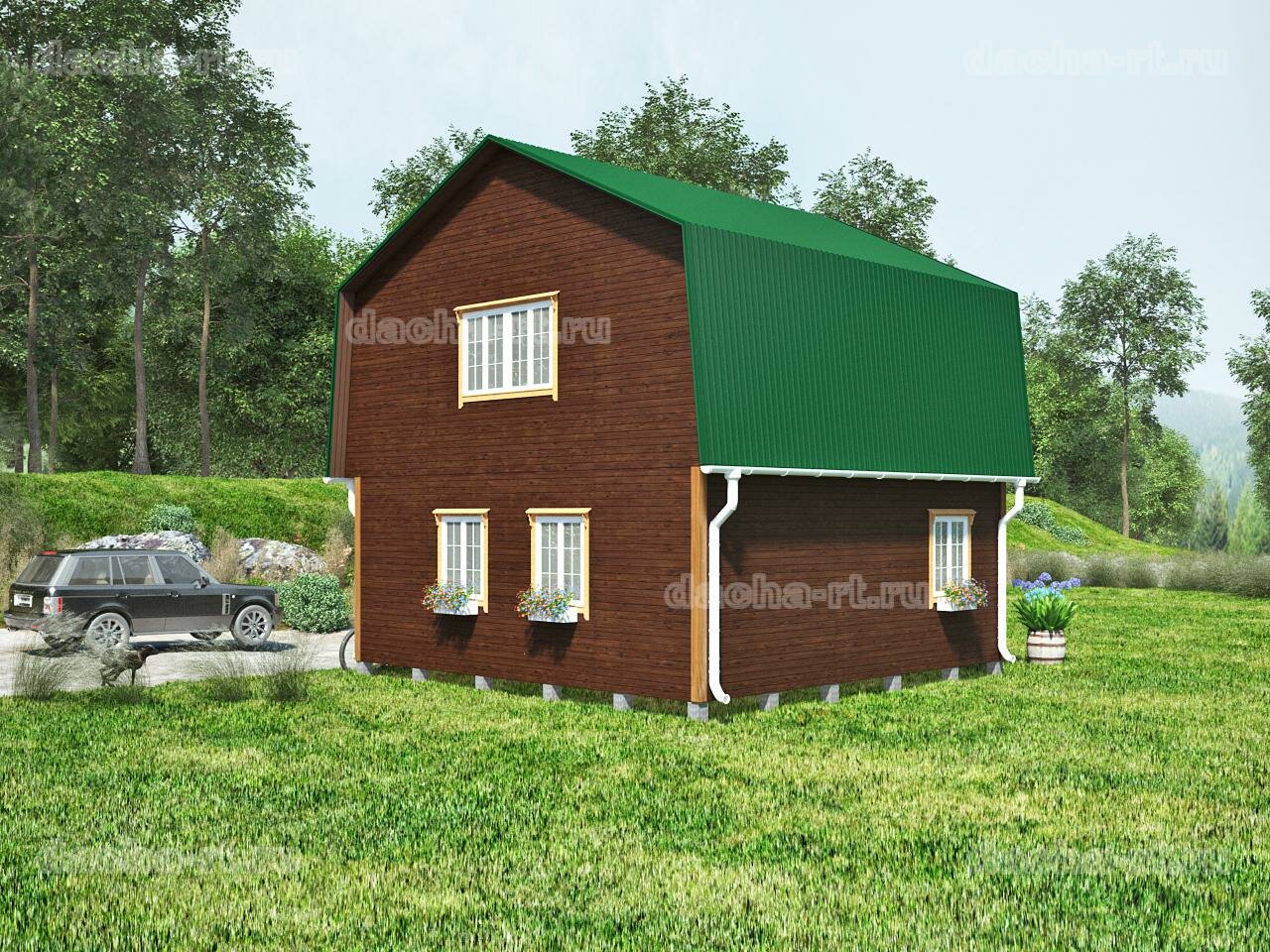 В базовую комплектацию включаются следующие опции: фундамент - опорно-блочный из бетонных блоков 200*200*400мм, наружная обшивка дома - вагонка хвойных пород; пол - шпунтованная доска 36*135мм; окна - размером 800*1000мм двухстворчатые с фурнитурой; двери - филенчатые; кровля - ондулин черепица (цвета на выбор); Проект каркасного дачного дома можно видоизменить, добавить террасу, веранду, или балкон (для вариантов домов с мансардной крышей)